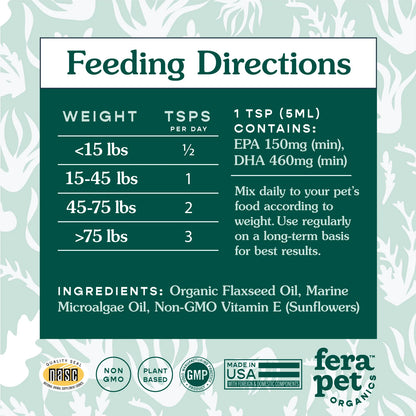 Fera Pets - Vegan Omega-3, 6, 9s Algae Oil for Dogs & Cats 8oz