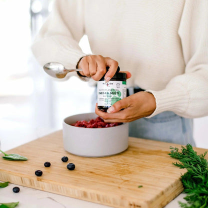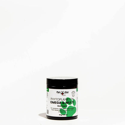 Pet Drs Phytoplankton Omega & Multi is your pet's daily dose of greens and more. Our unique product harnesses the power of a single-celled organism to provide over 75 essential nutrients. It is packed with full spectrum protein, vitamins, minerals, and antioxidants. With its distinctive lipid structure, Phytoplankton facilitates nutrient absorption three times faster than fish or algae oils.